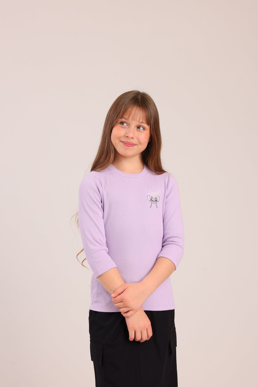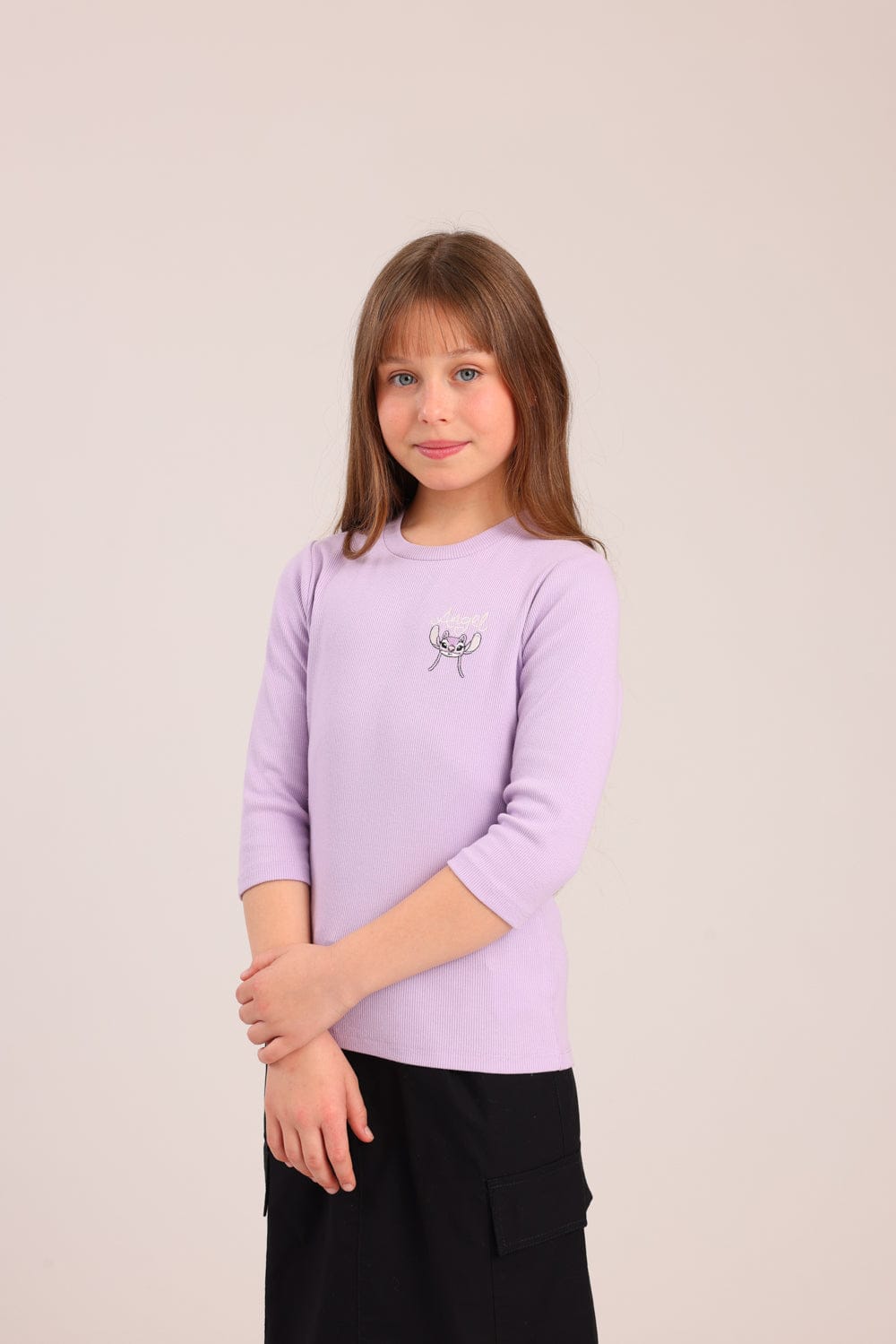 FOX בנות חולצה קצרה חולצה 3/4 ממותגת סטיץ' דיסני חולצה 3/4 ממותגת סטיץ' דיסני