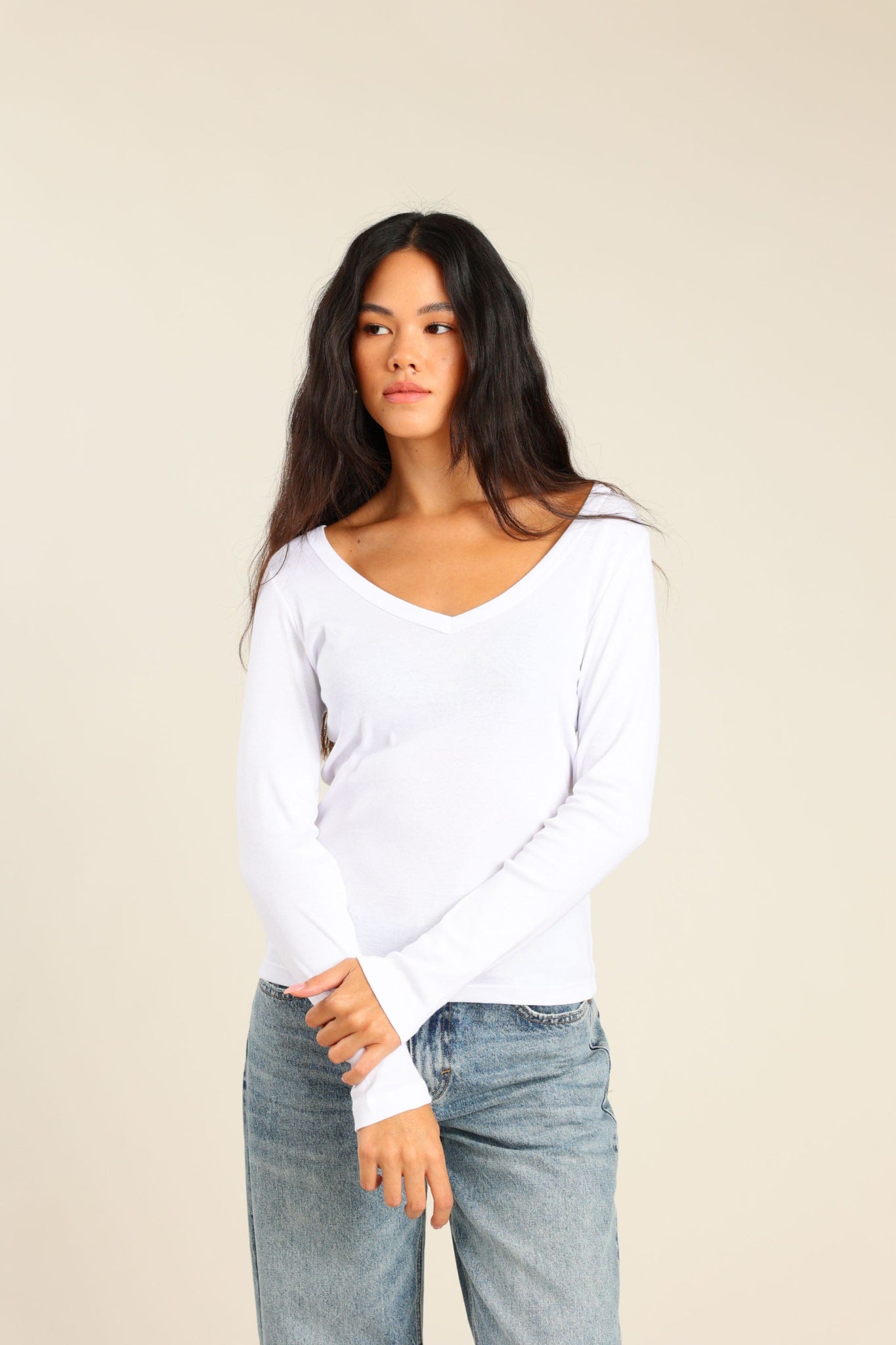 חולצה ארוכה צווארון V