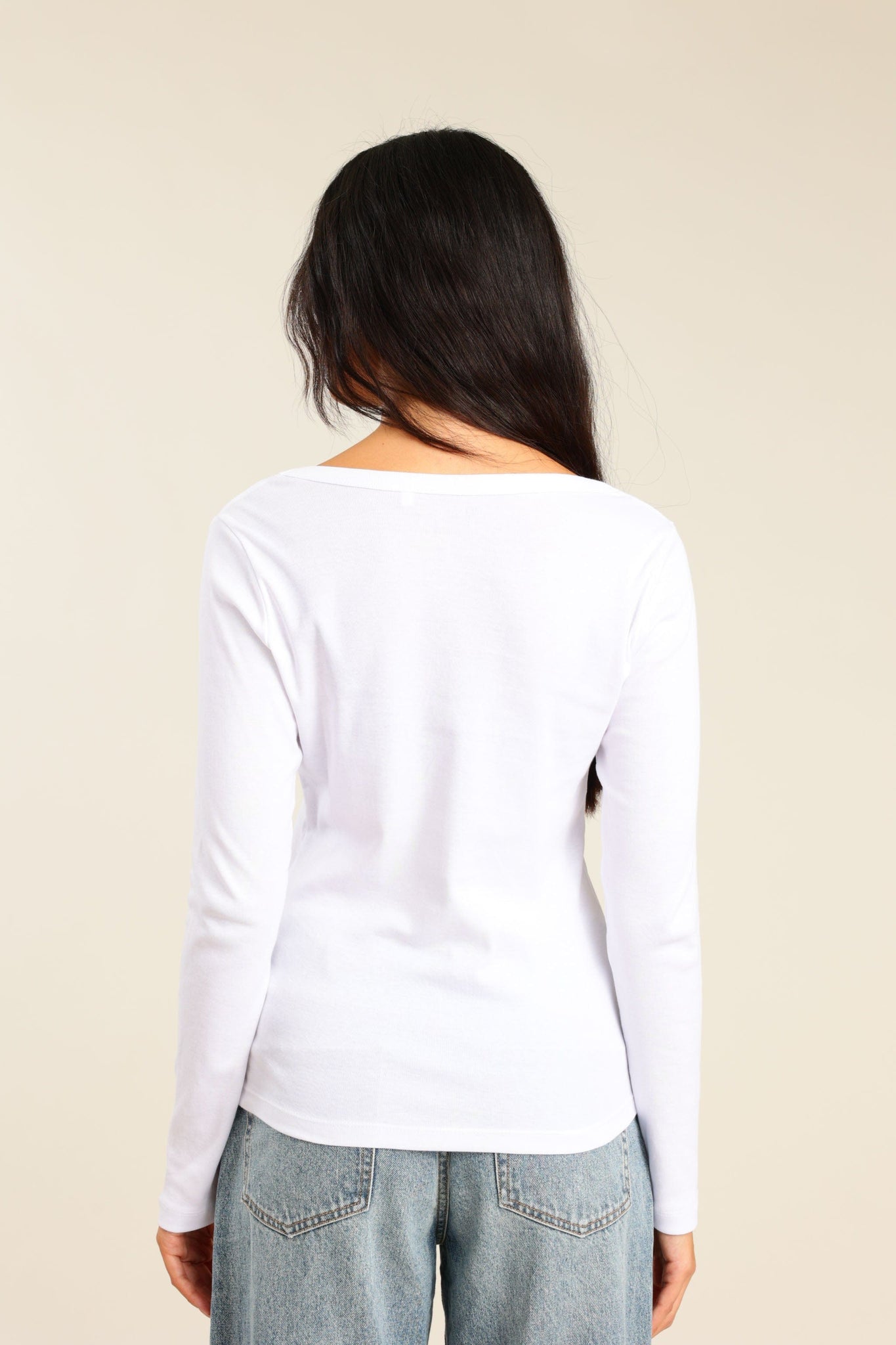 חולצת בייסיק ארוכה צווארון V מבד ריב בגזרה צרה