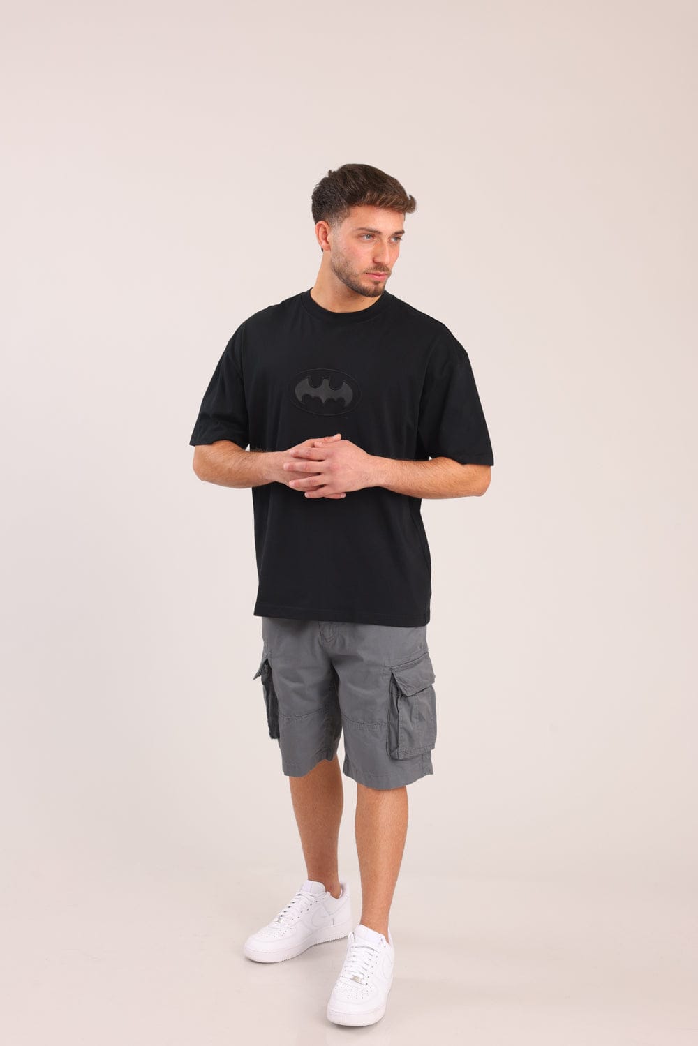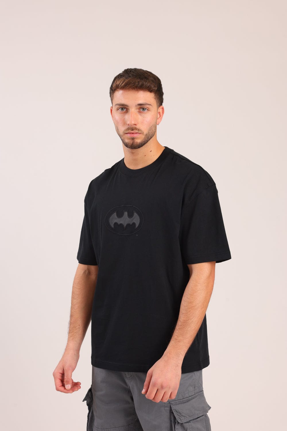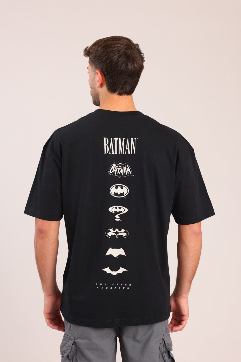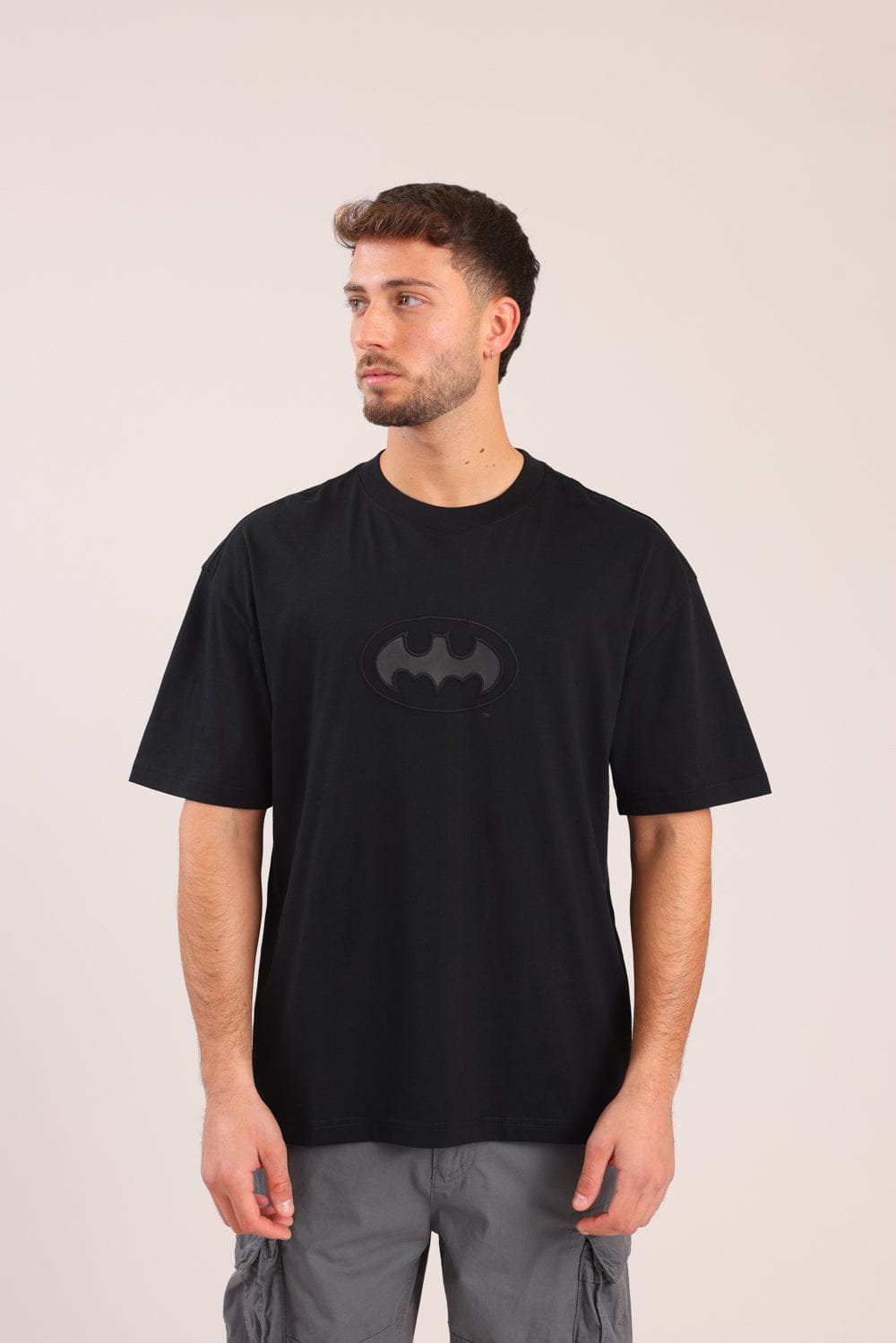 חולצת טריקו ממותגת באטמן, בגזרת אוברסייז עם הדפס קדמי ואחורי.