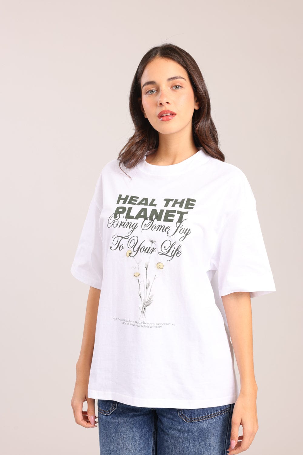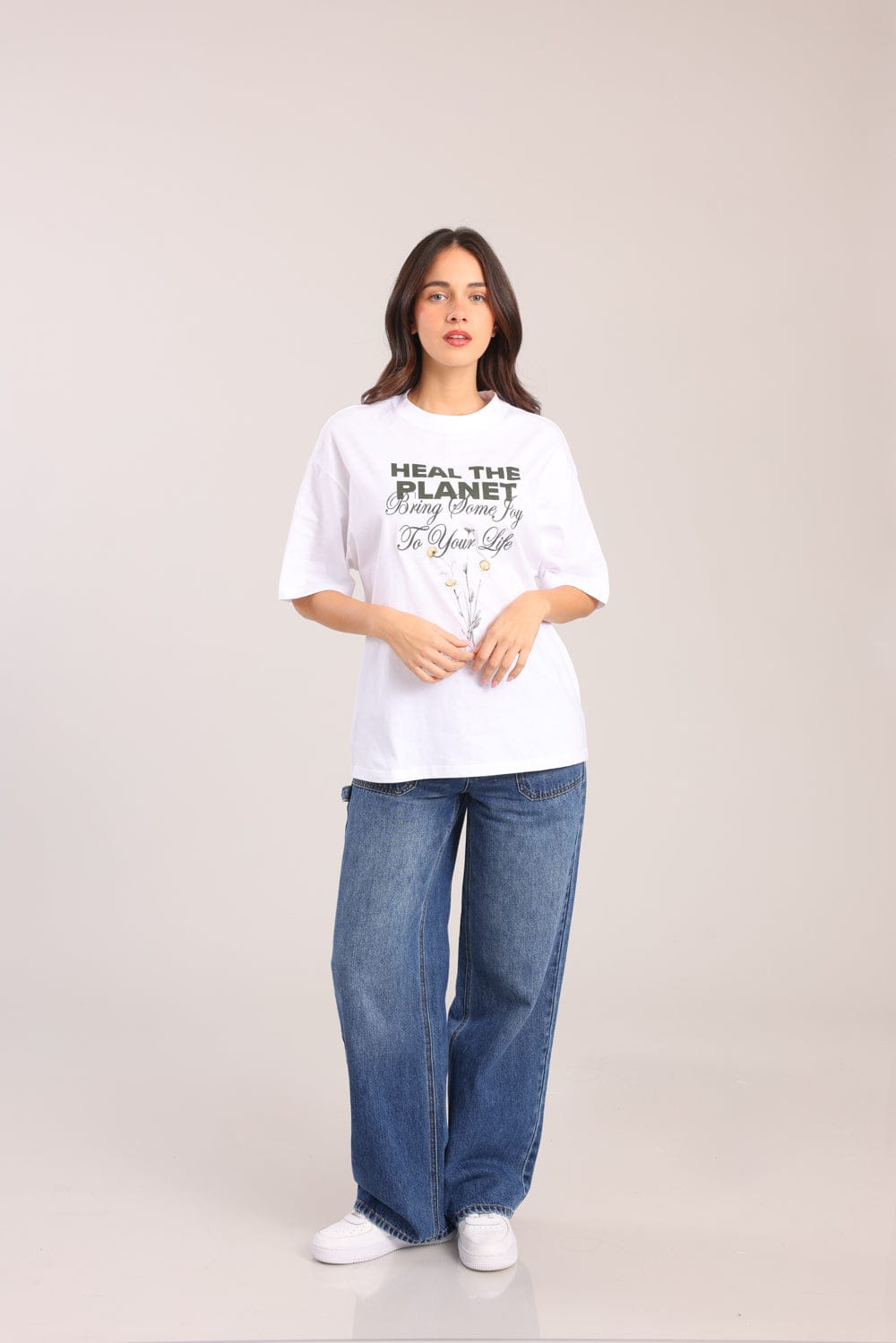 חולצת טריקו אוברסייז עם הדפס קדמי
