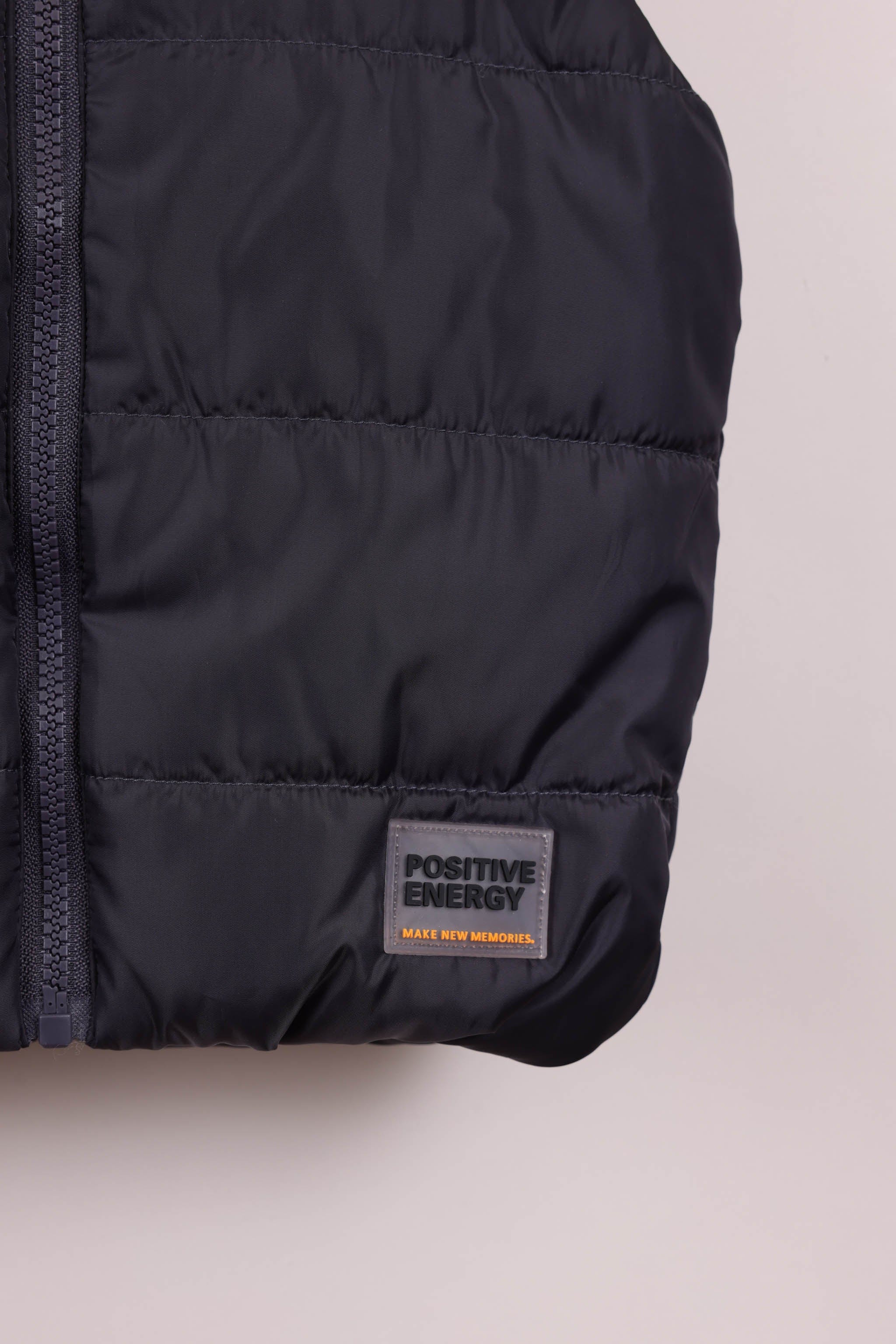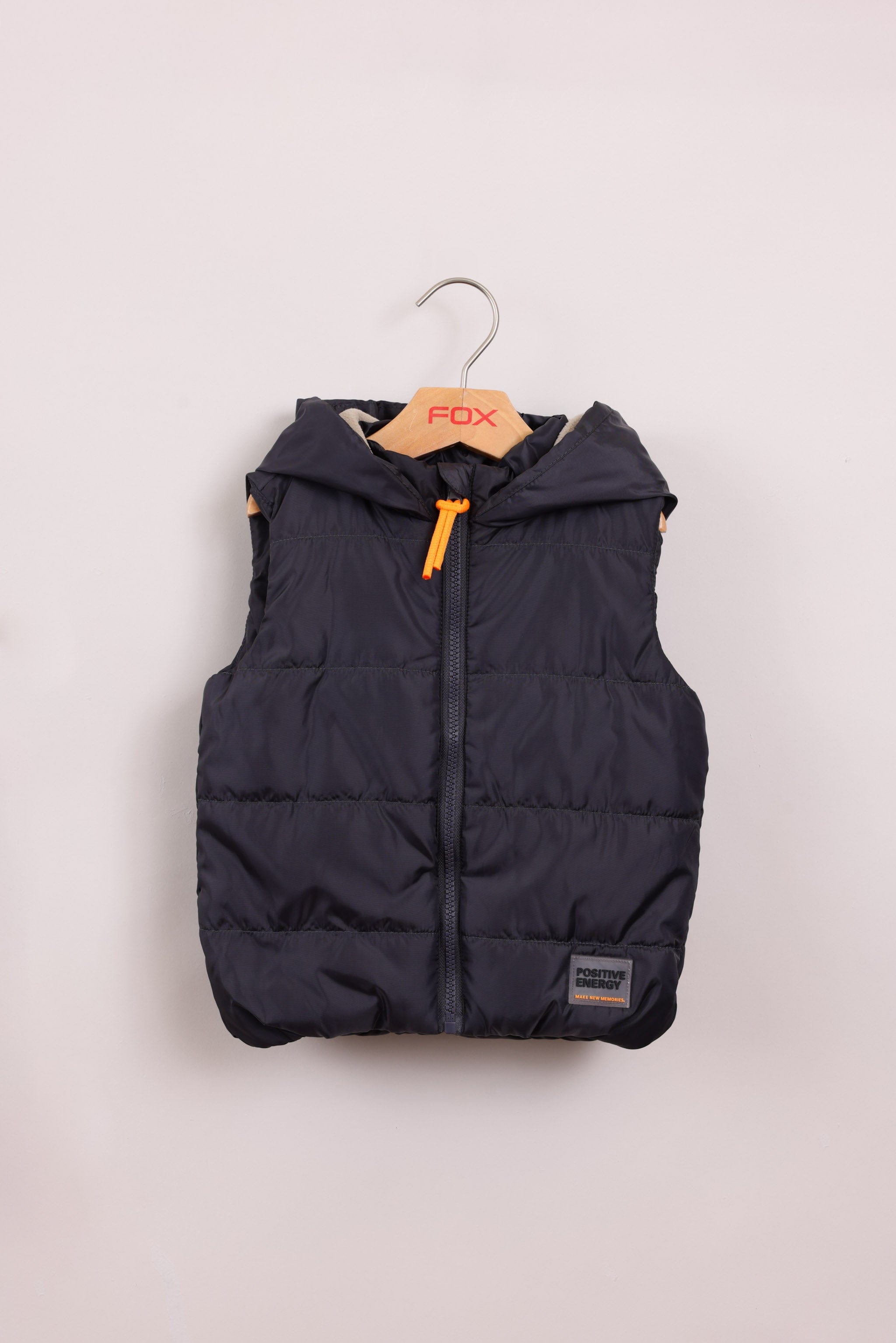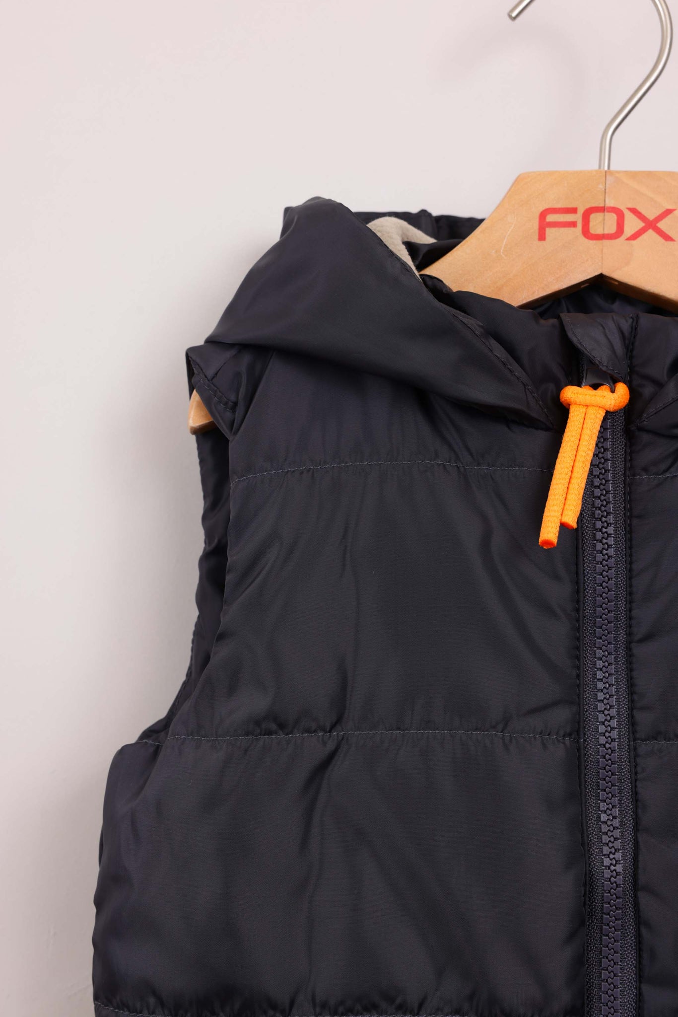 אפודת פוך לבייבי עם רוכסן קדמי וכובע מחמם