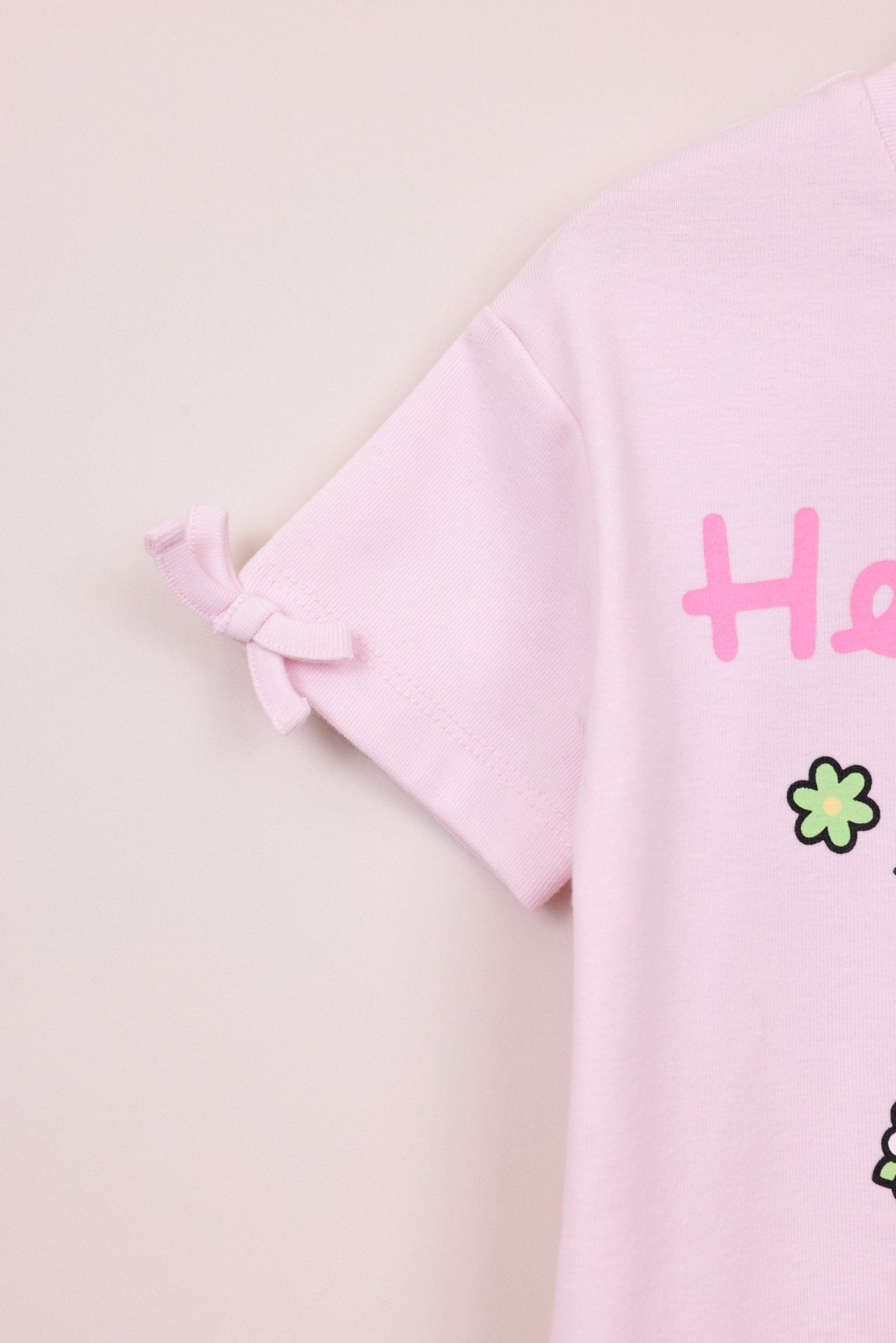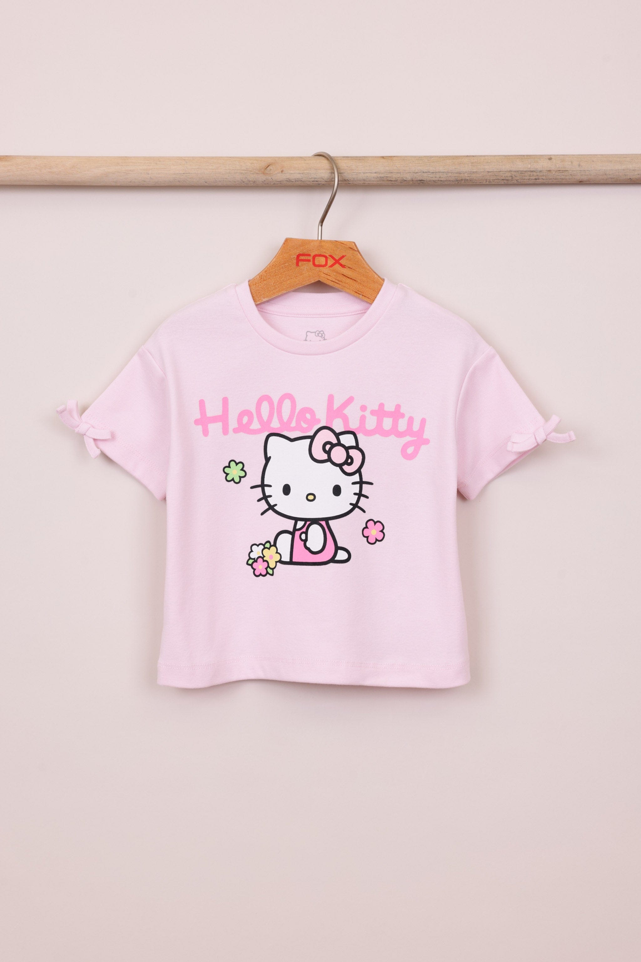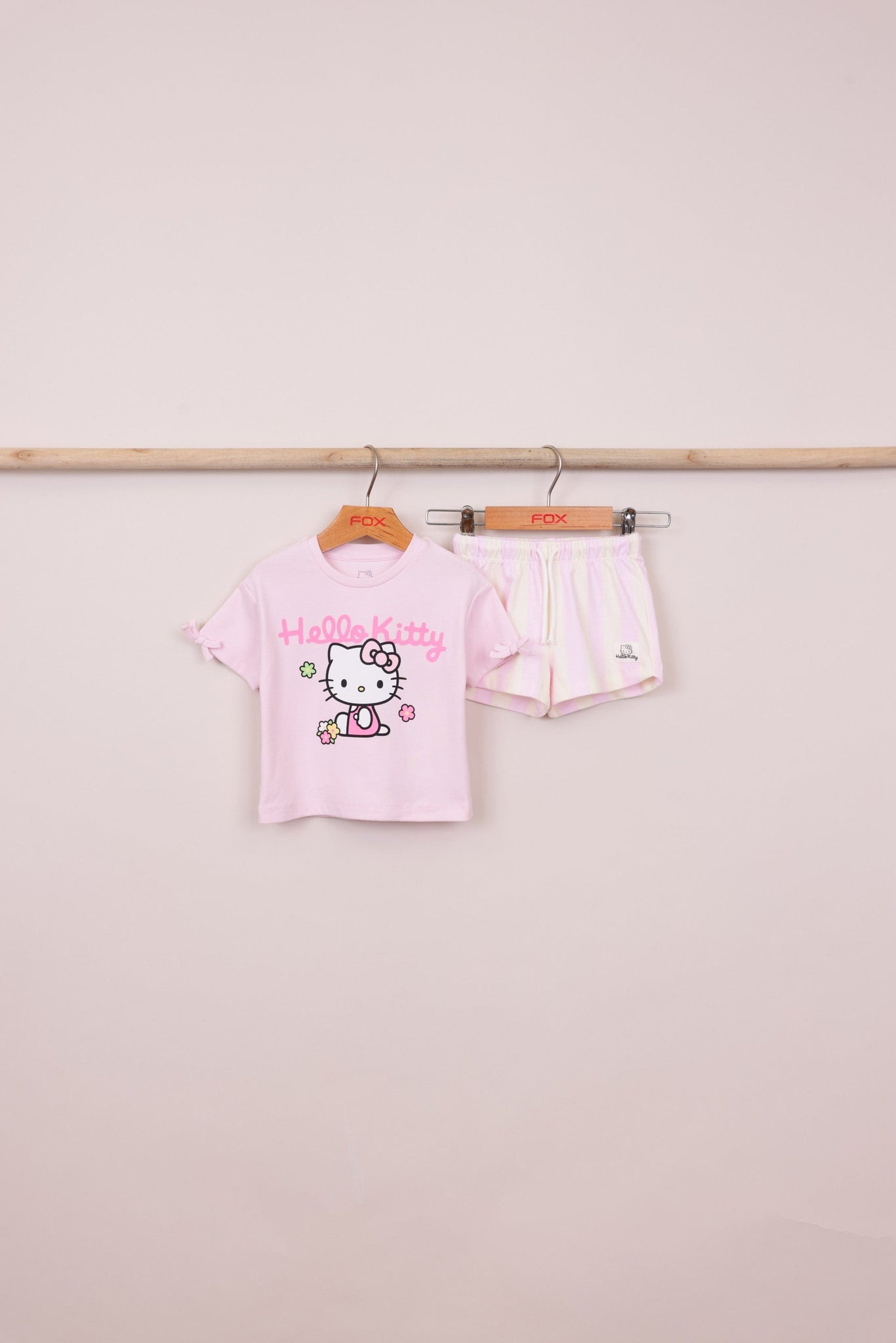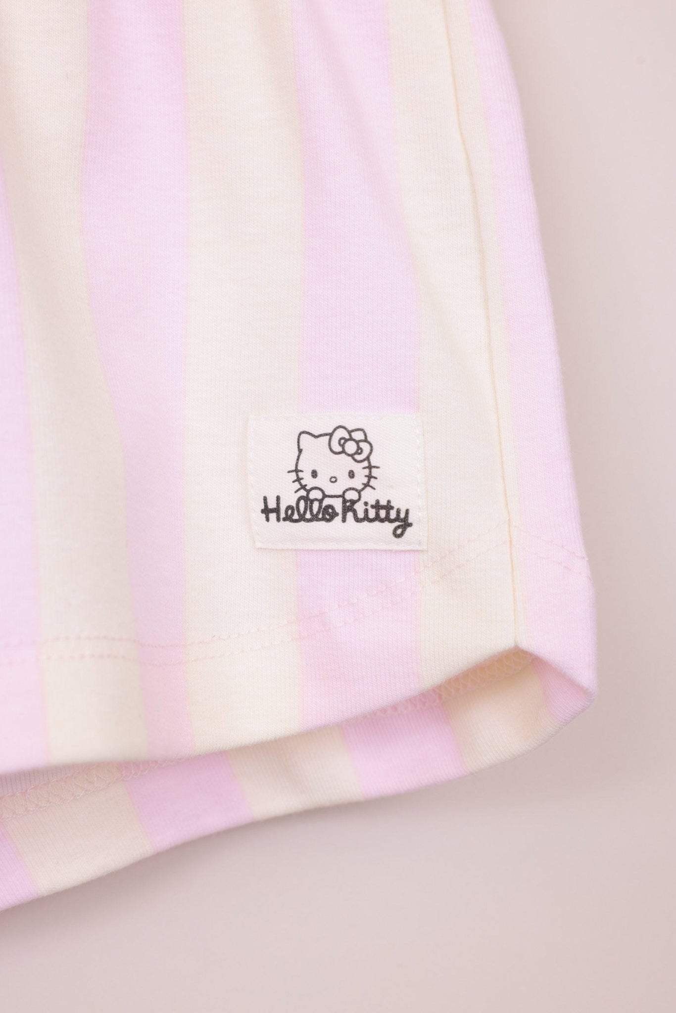 טישרט קצרה עם הדפס קדמי , שורט עם פסים ממותג הלו קיטי