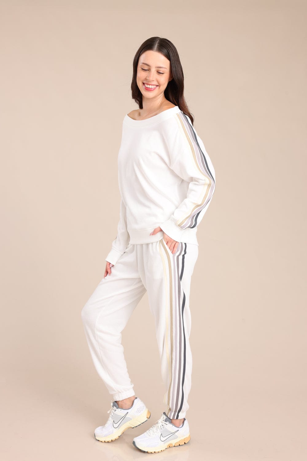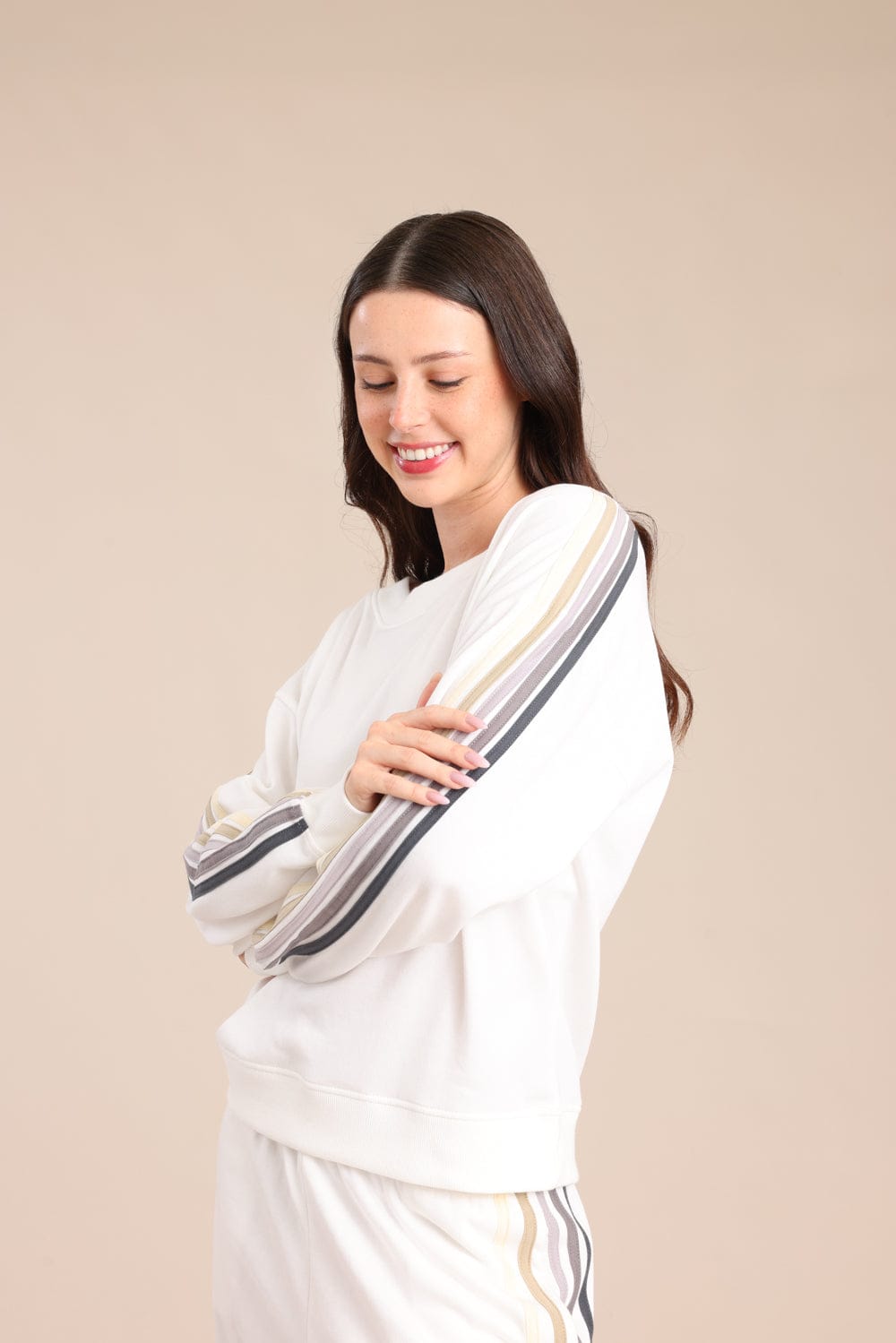 פוטר נשים עם פסים לאורך הידיים וצווארון עגול