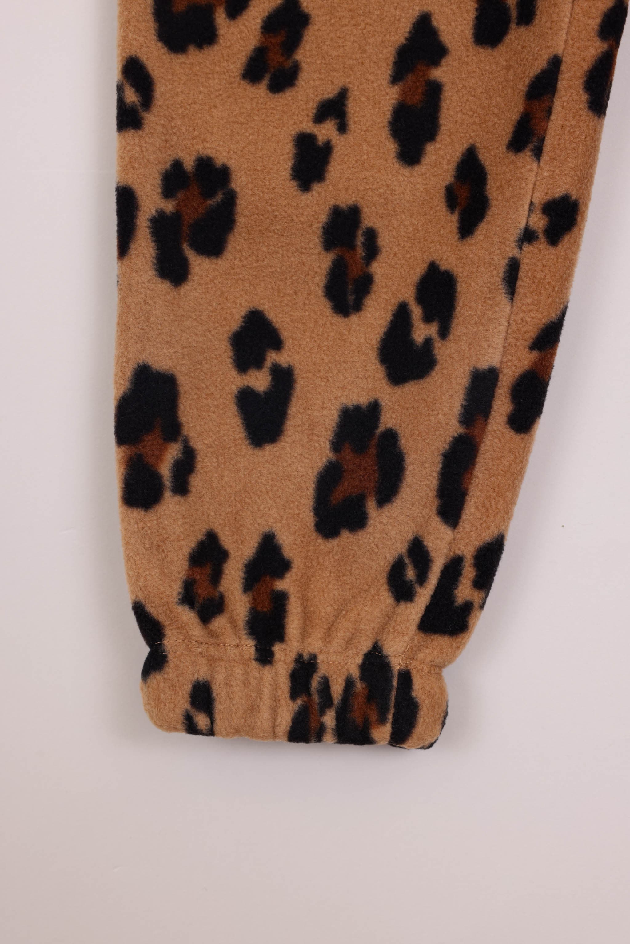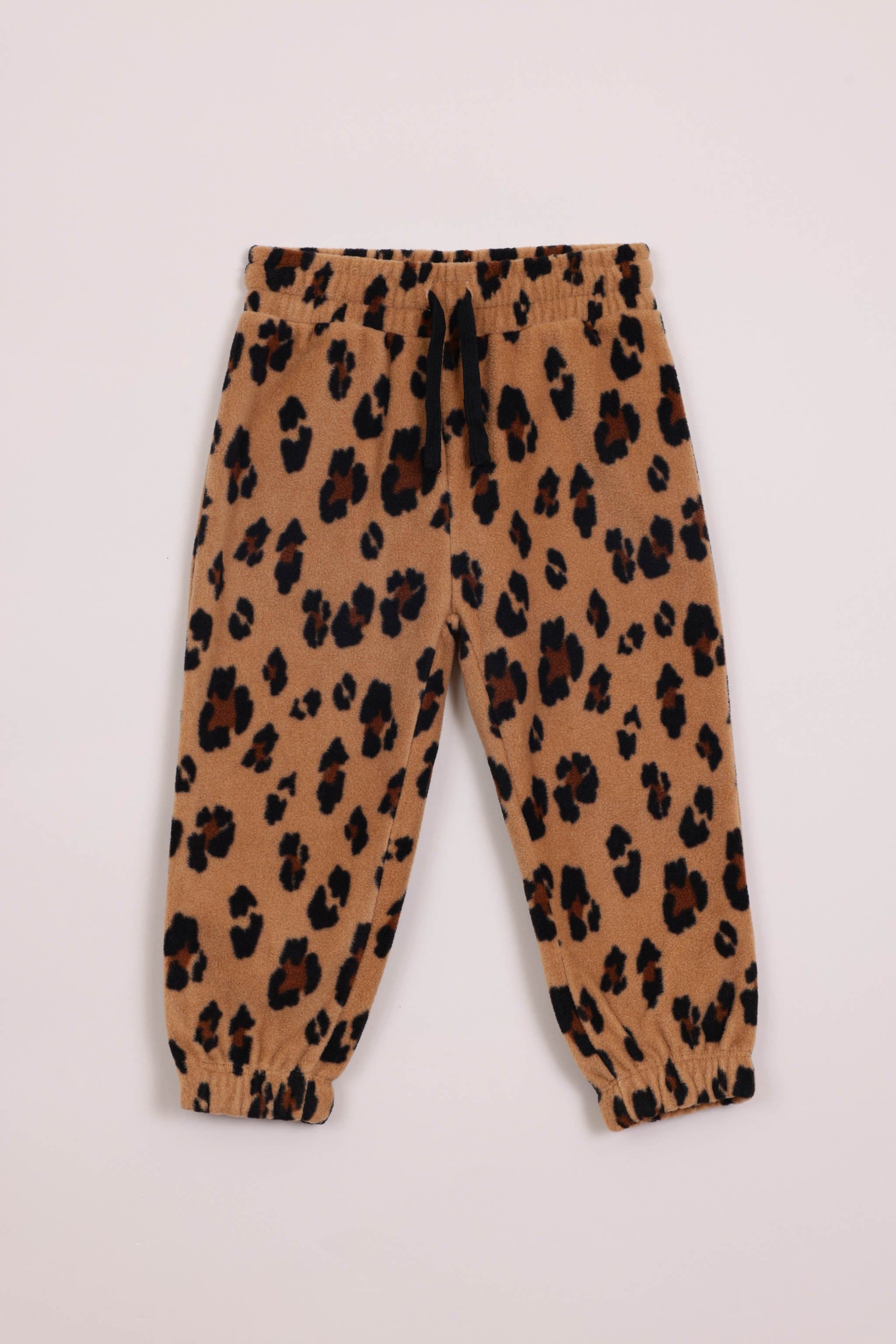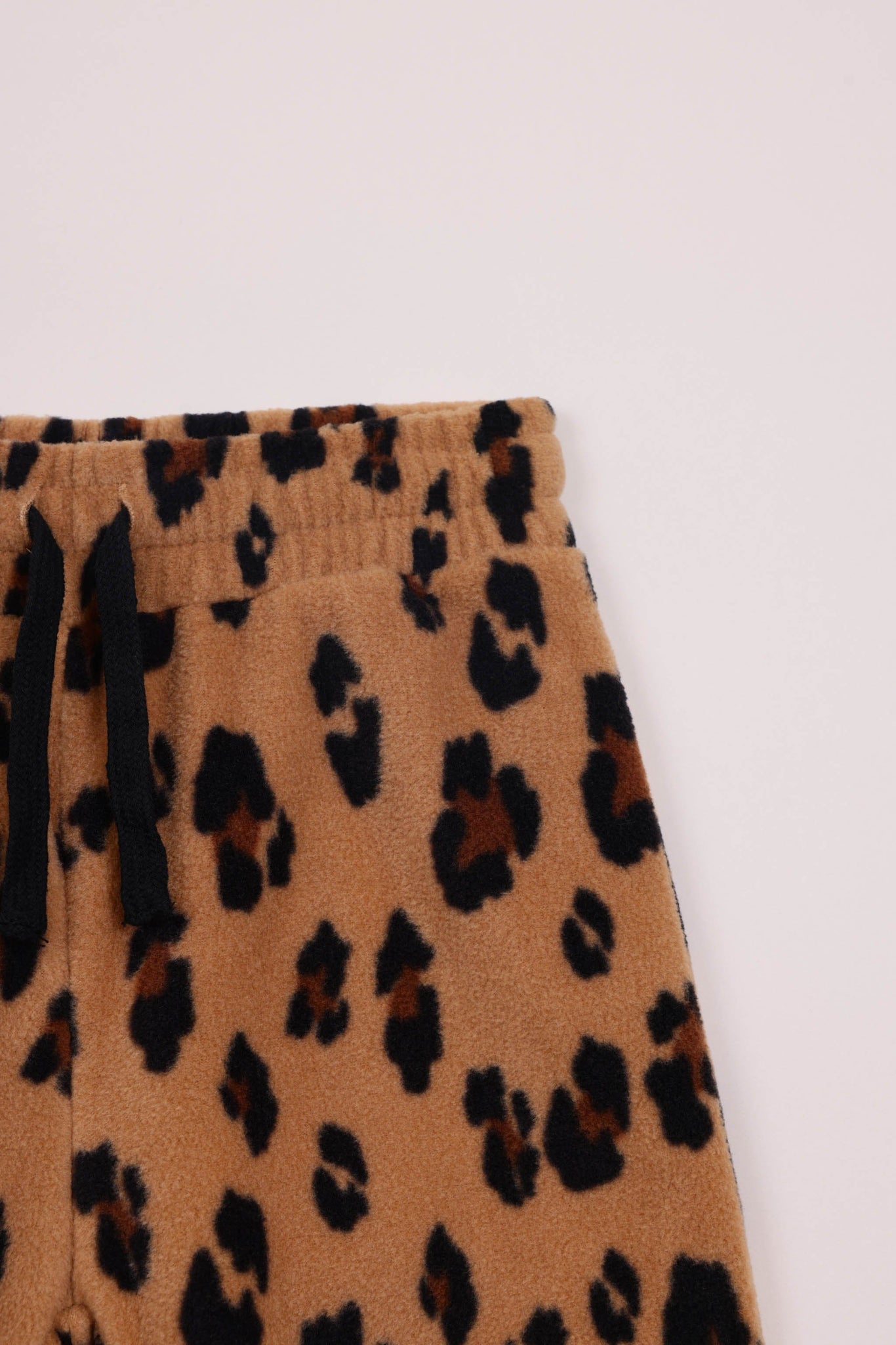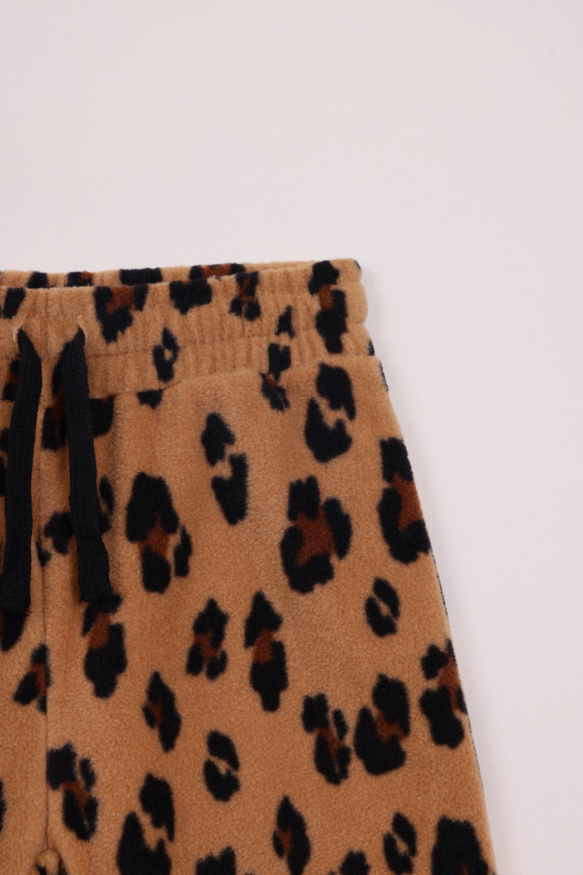 מכנסי פליז עם הדפס all over רכים ומחממים עם גומי ושרוך במותן וגימור גומי בקרסול נוחים ליום יום ולימים קרים