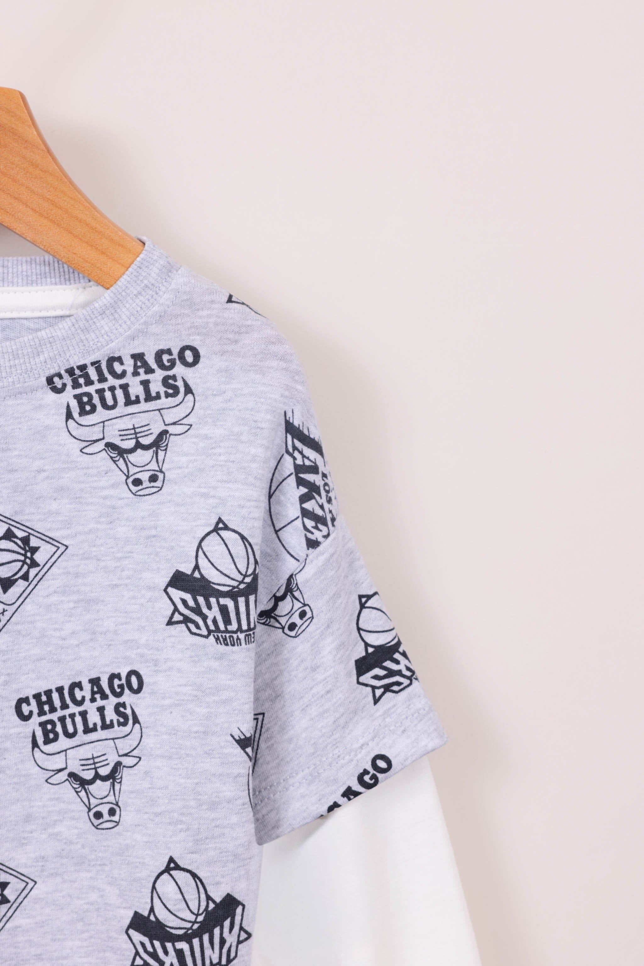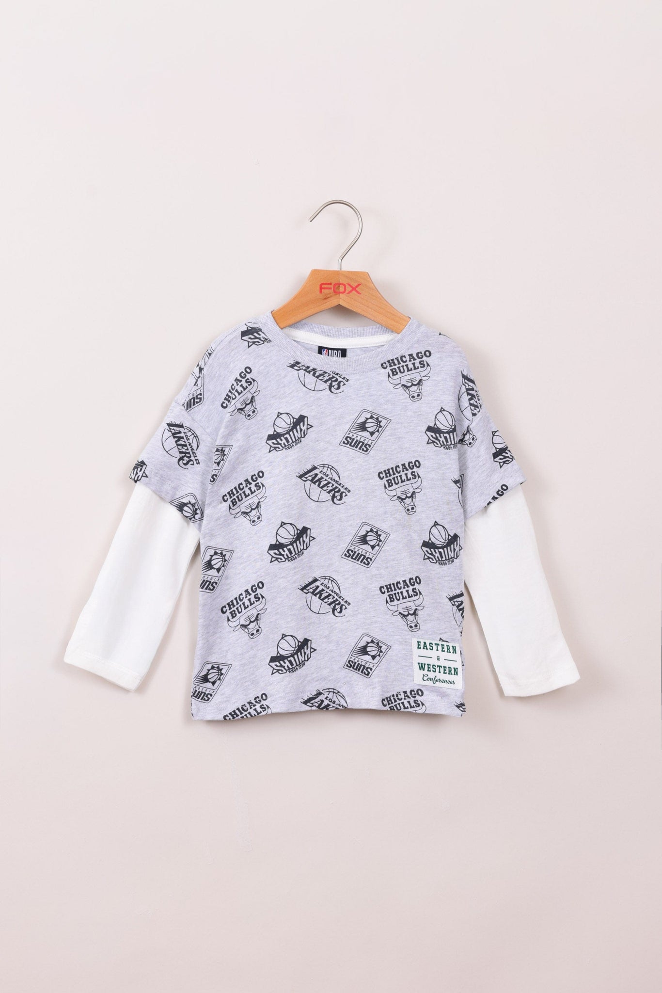 חולצה ממותגת NBA בצבע מלנז'אפור