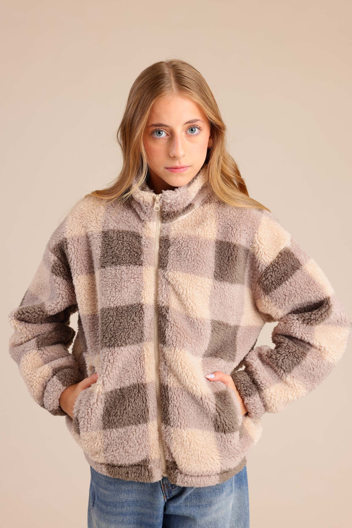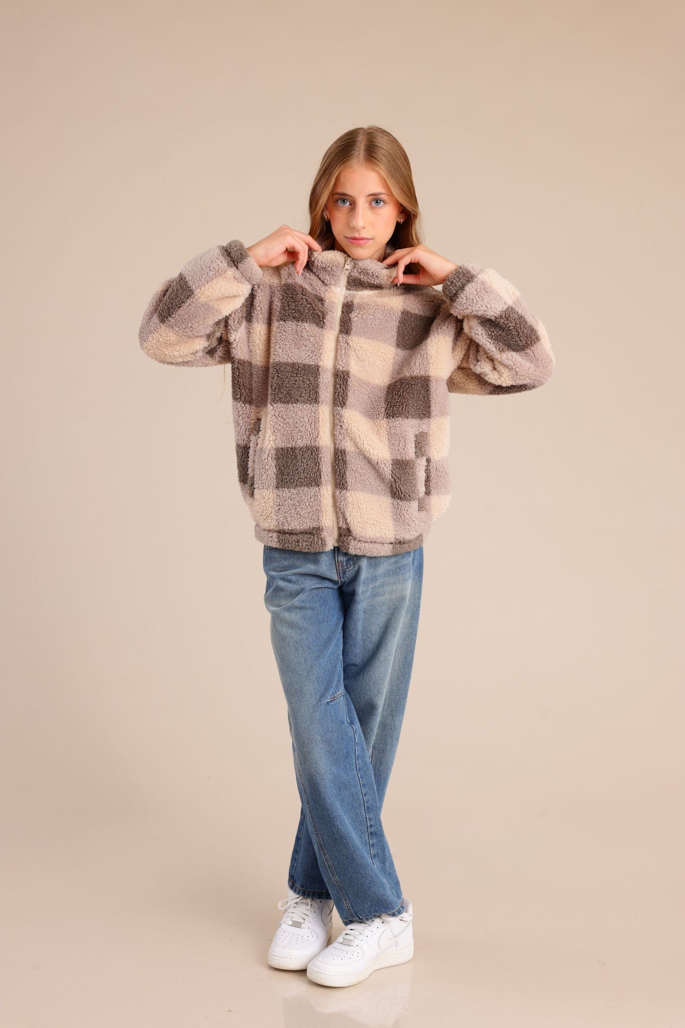 שרלינג משובץ מבד מפנק ומחמם עם רוכסן קדמי