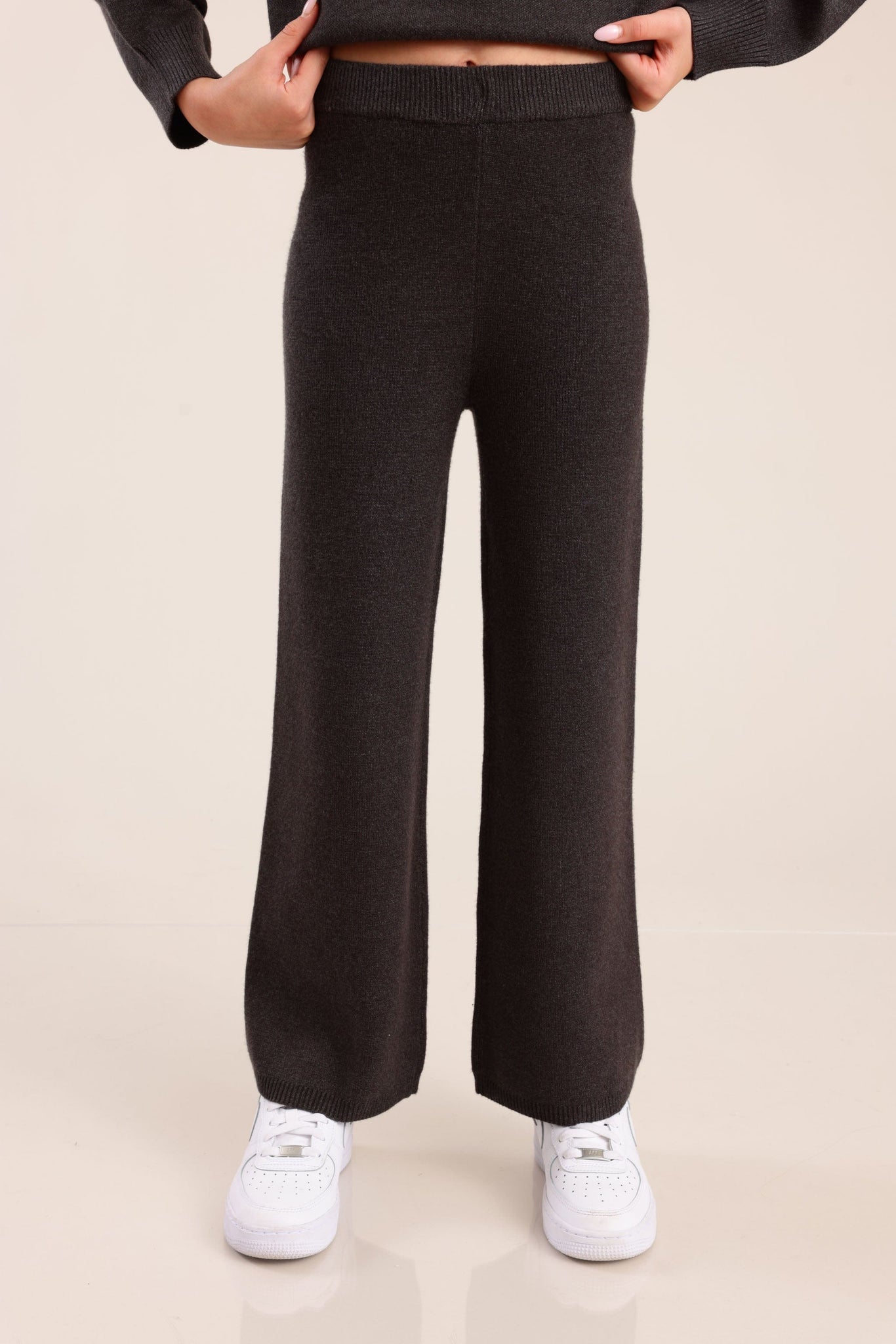 מכנסי אריג בצבע מלנז'שחור