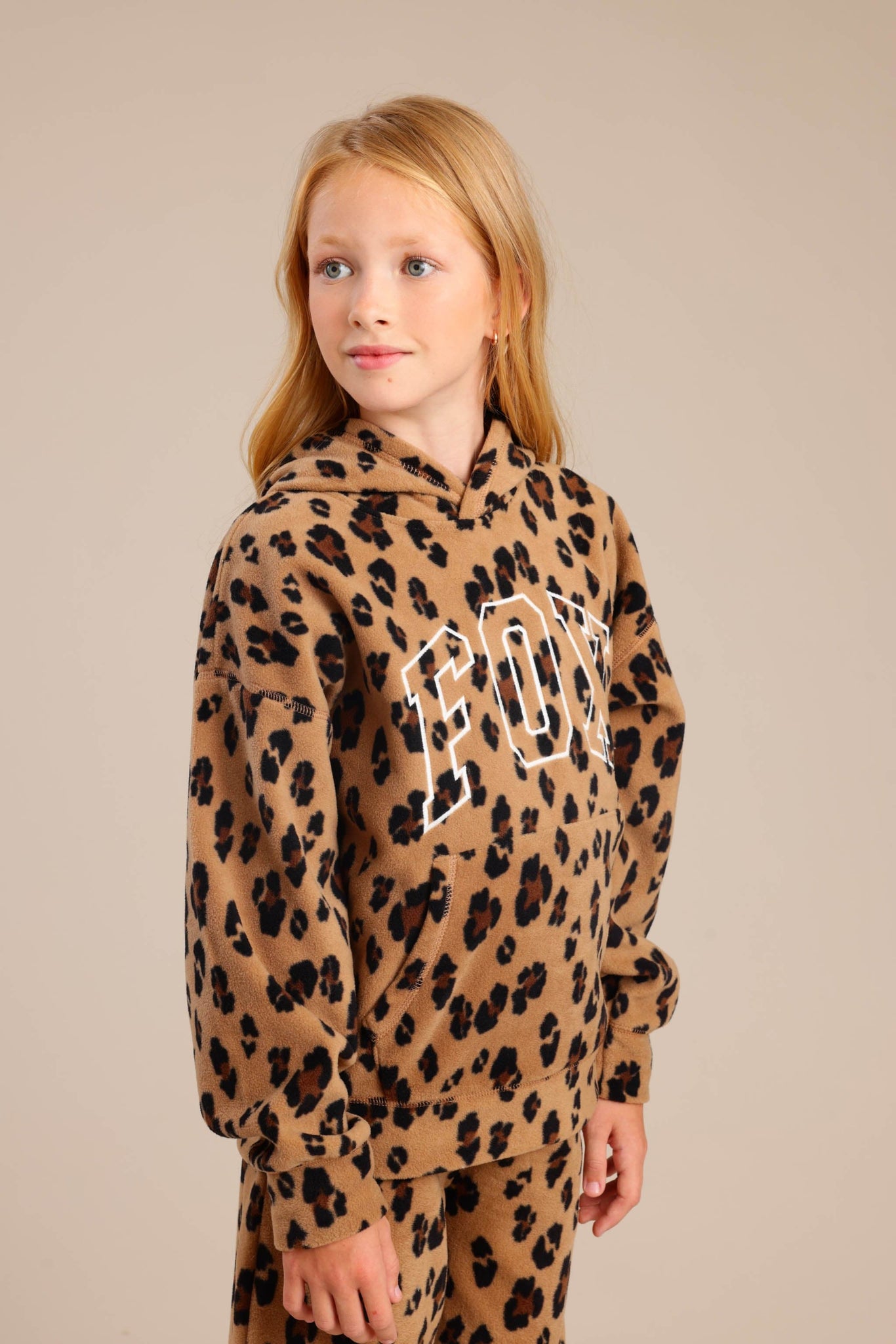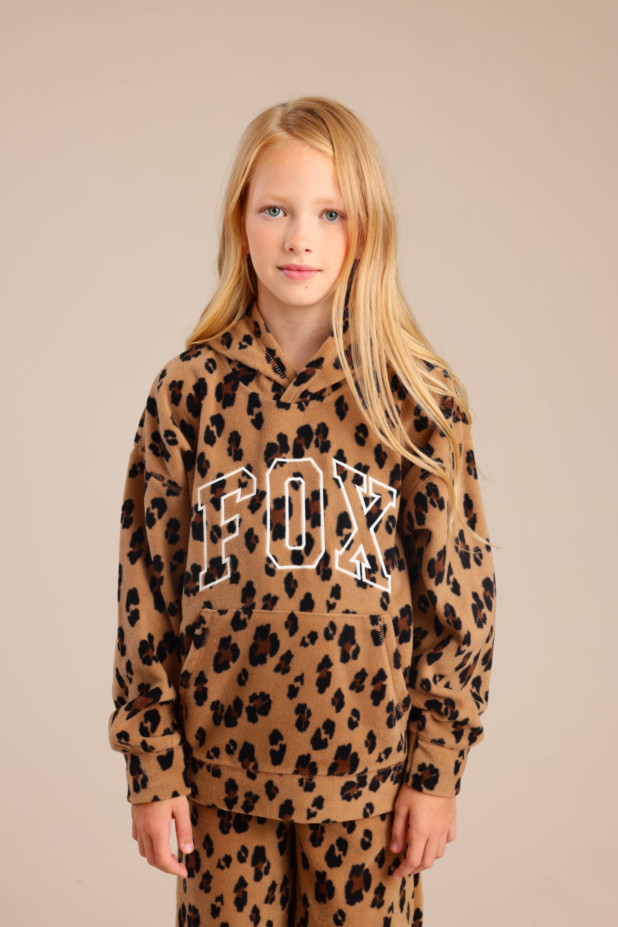 קפוצ'ון פוקס פליז עם לוגו קדמי והדפס מנומר