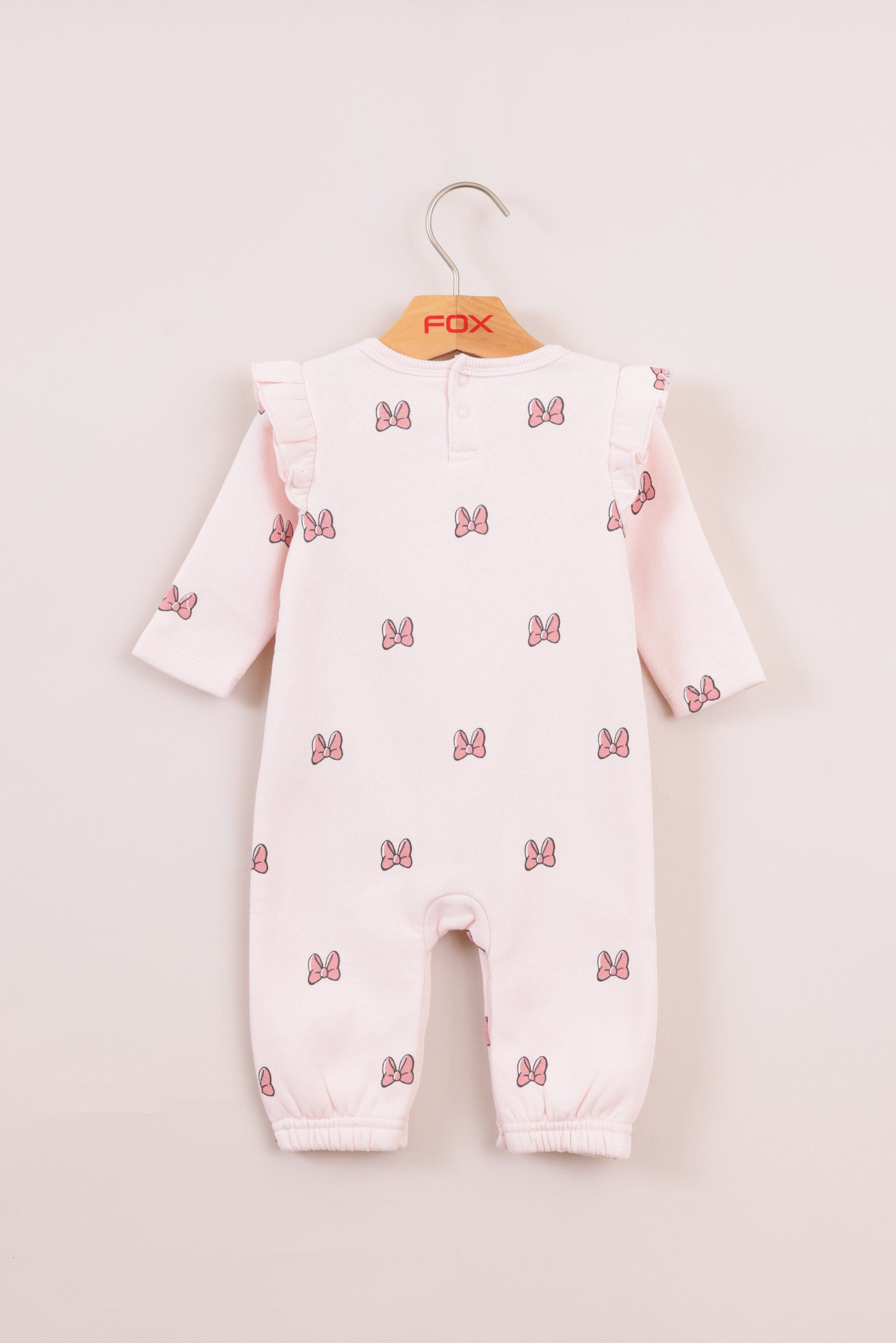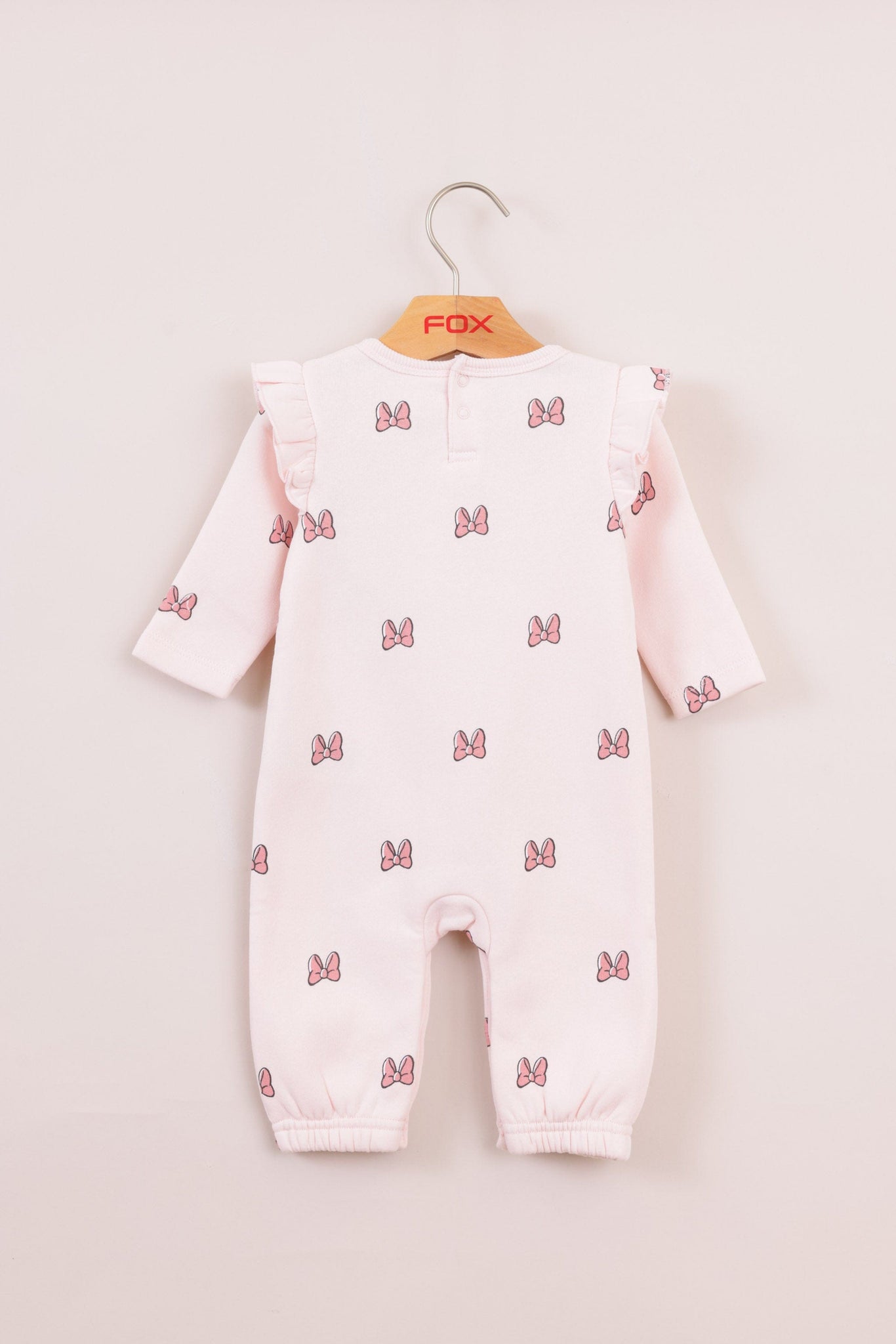 אוברול פליז רך ונעים עם הדפס פפיונים עדין ופרטים מתוקים של דמות רקומה