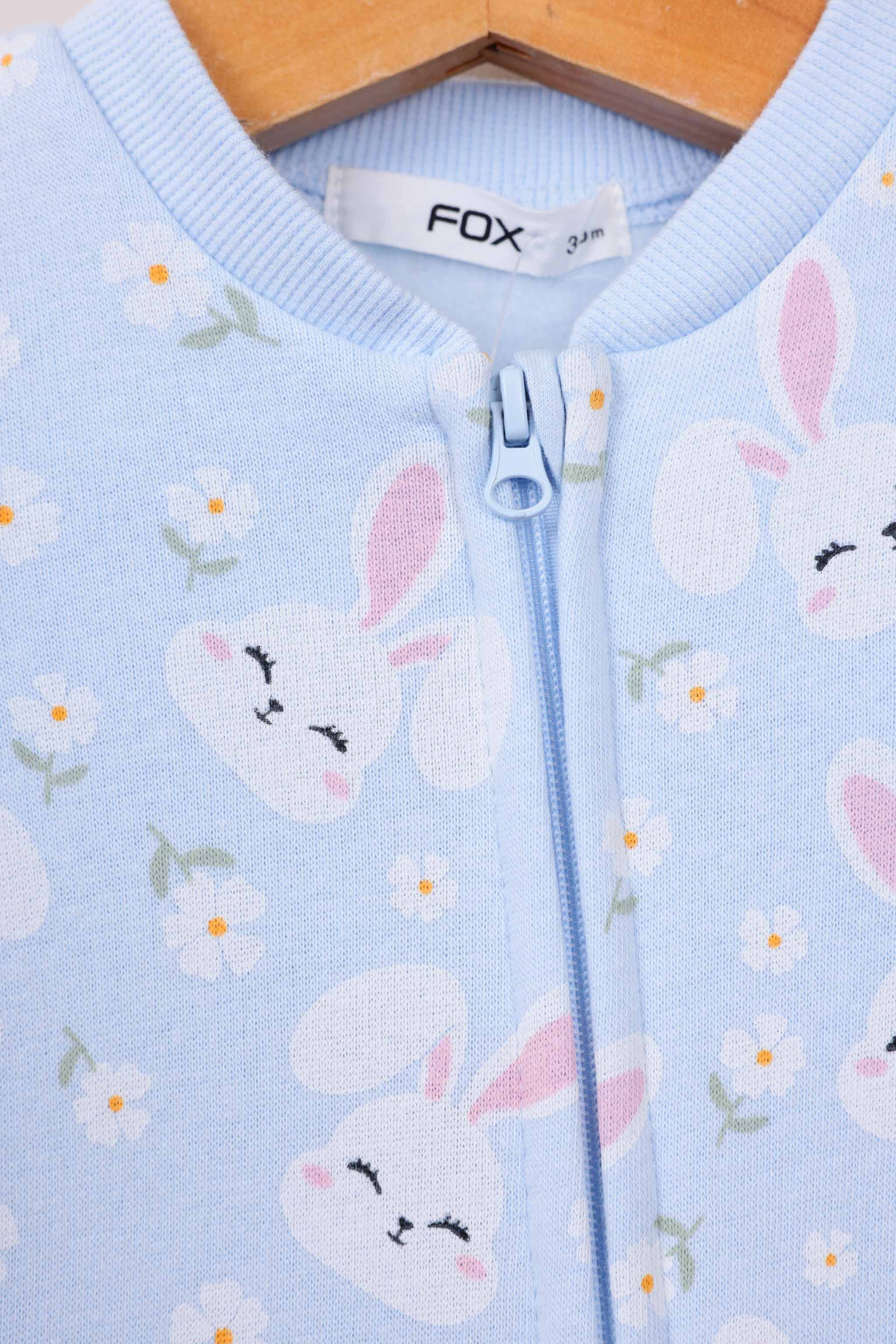 אוברול פליז רך ונעים עם הדפס ארנבונים עדין