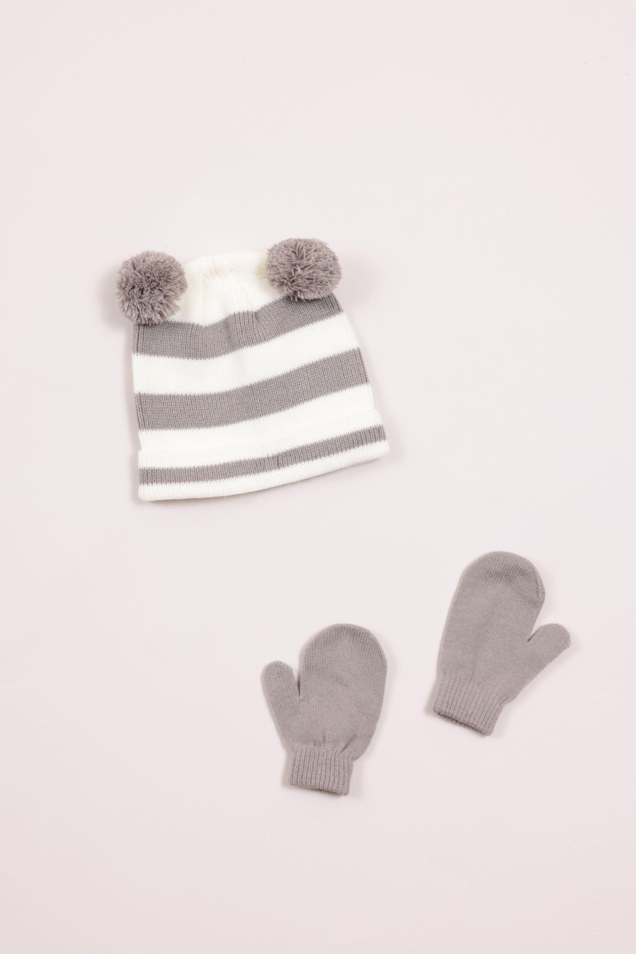 סט ניו בורן כובע וכפפות בצבע אופוויט